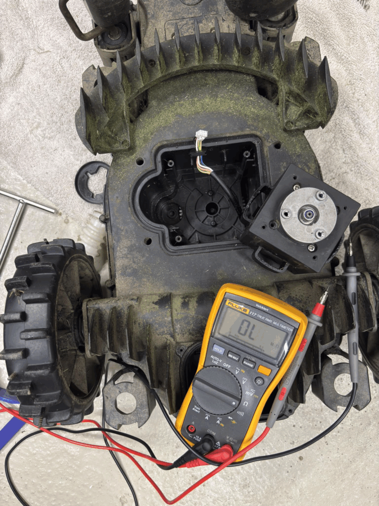 Egy kedves ügyfelem hozta be hozzám ezt a Parkside B2-es robotfűnyírót, ami motorhibával küszködött: a vágómotor nehezen indult, nem pörgött fel rendesen, és gyakran leállt.