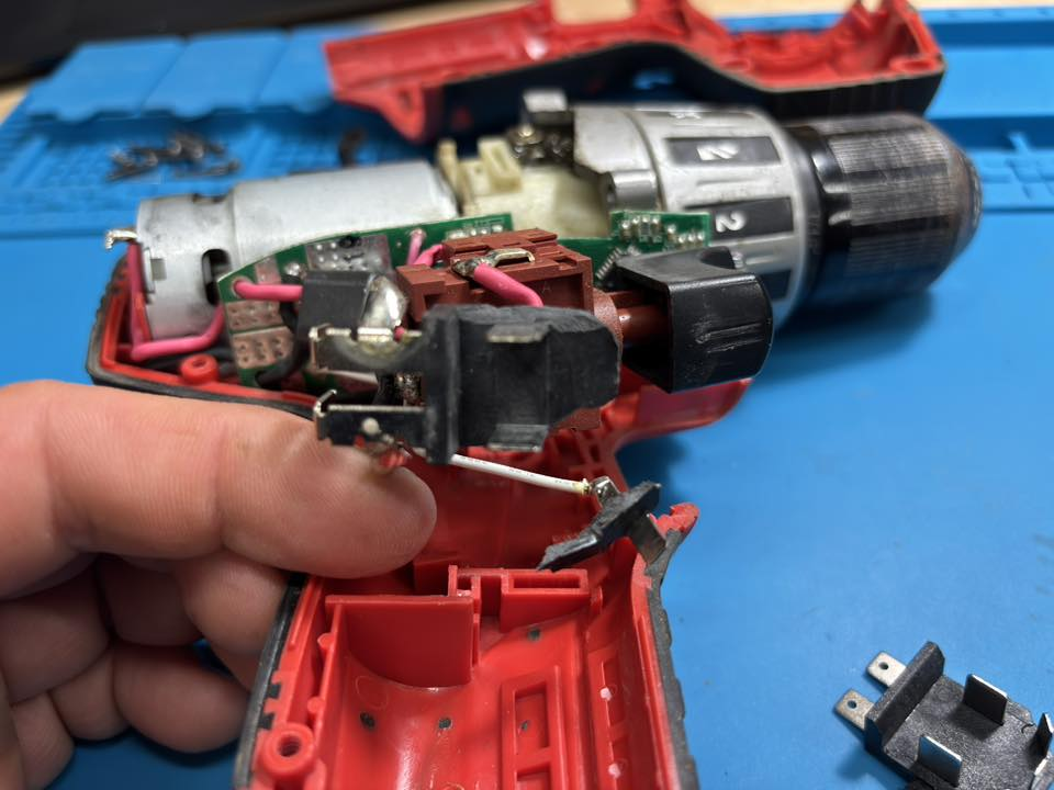 Milwaukee C12DD javítás – kontakthiba az akkumulátor csatlakozásnál.